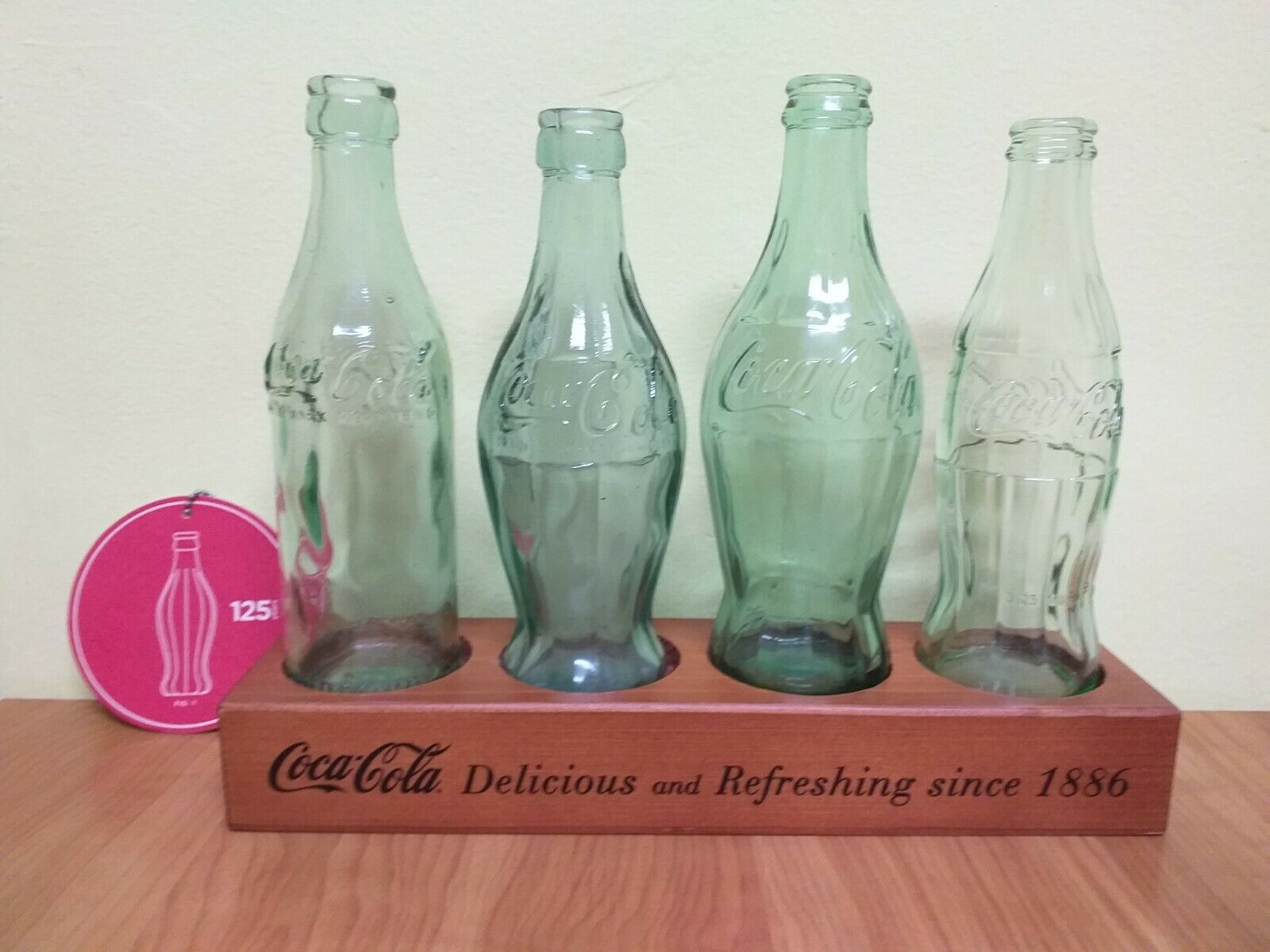 Title (ebay affiliate link): Evolution Of The Coca-Cola Contour Bottle - 4 pcs on wood plinth - empty 2.