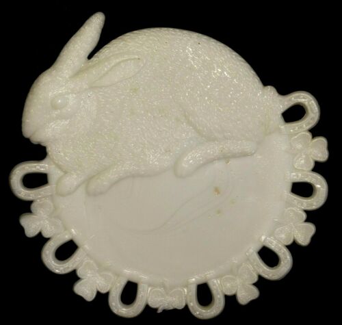 Title (ebay affiliate link): Vintage Westmoreland Milk Glass Rabbit Bunny Plate w Shamrock Horseshoe Trim