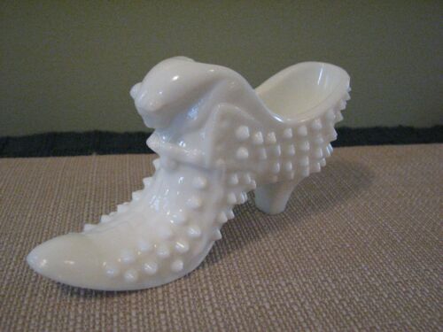 Vintage Fenton Hob Nail Glass Shoe, Milk Glass, Marked