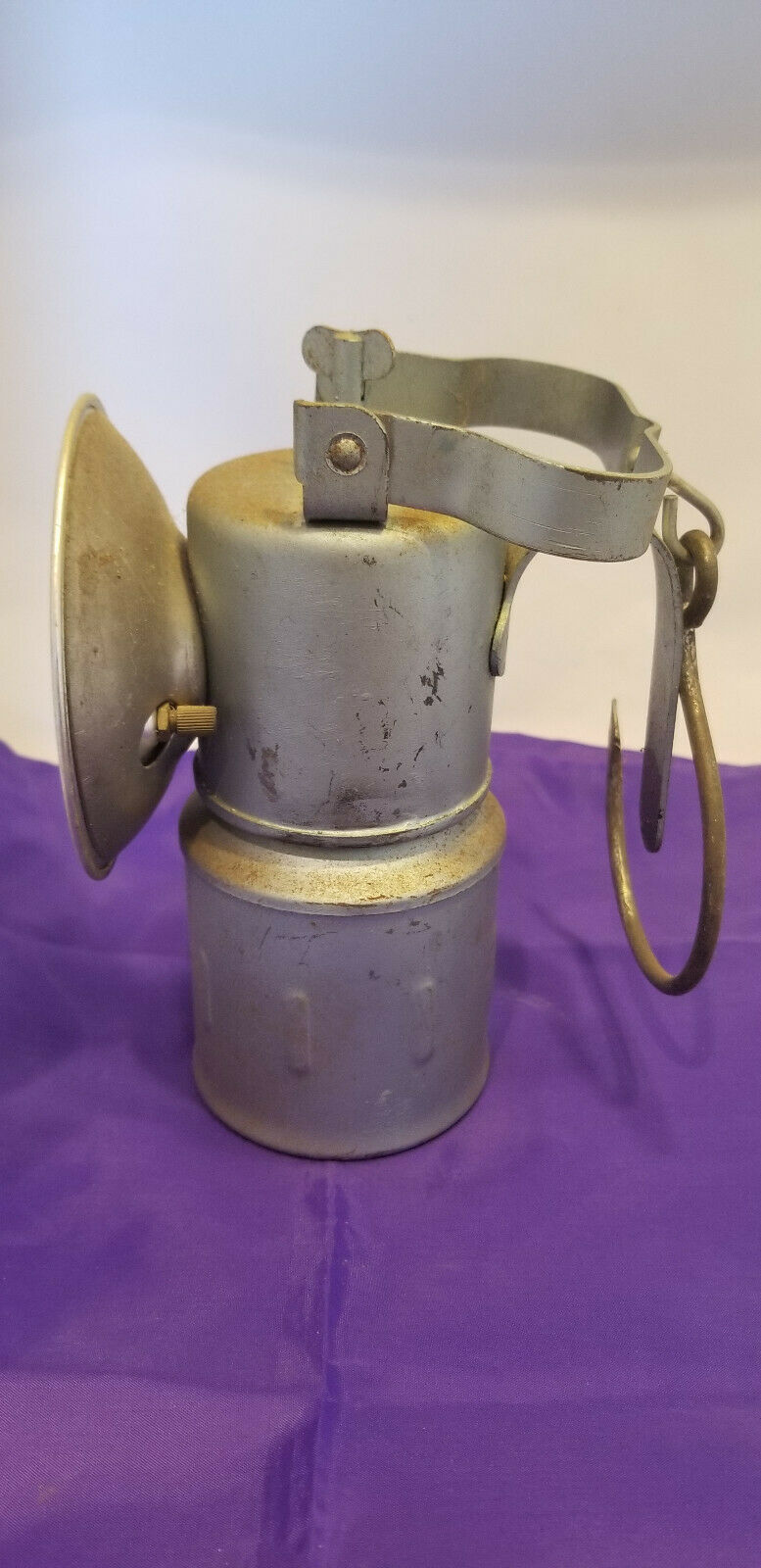 CARBIDE BIG JUSTRITE WORKING LAMP W/HANDLE & HOOK ANTIQUE - GRAMPA''S ESTATE SALE