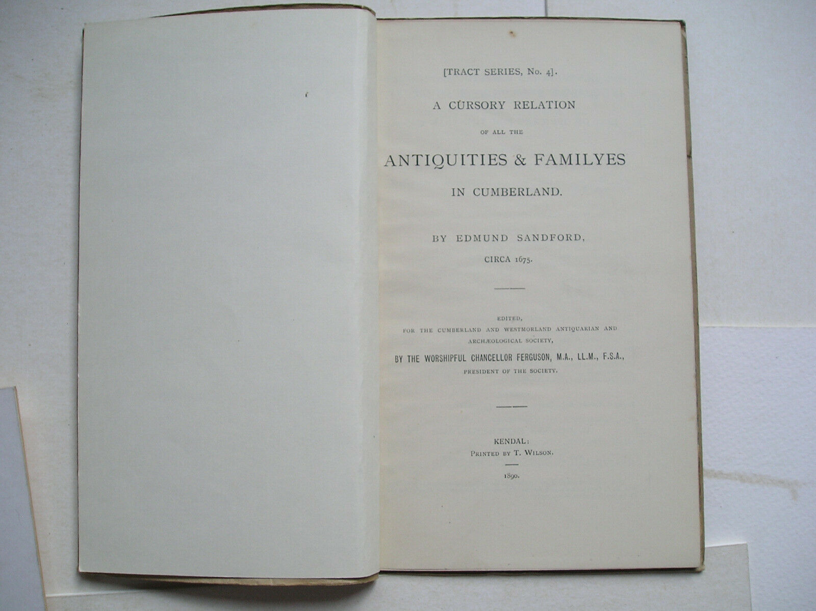 Title (ebay affiliate link): E Sandford. Cursory Relation of the Ancient Families of Cumberland circa 1645