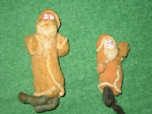 2 Early German Paper Mache & Wool Santa Claus Figures Ornament