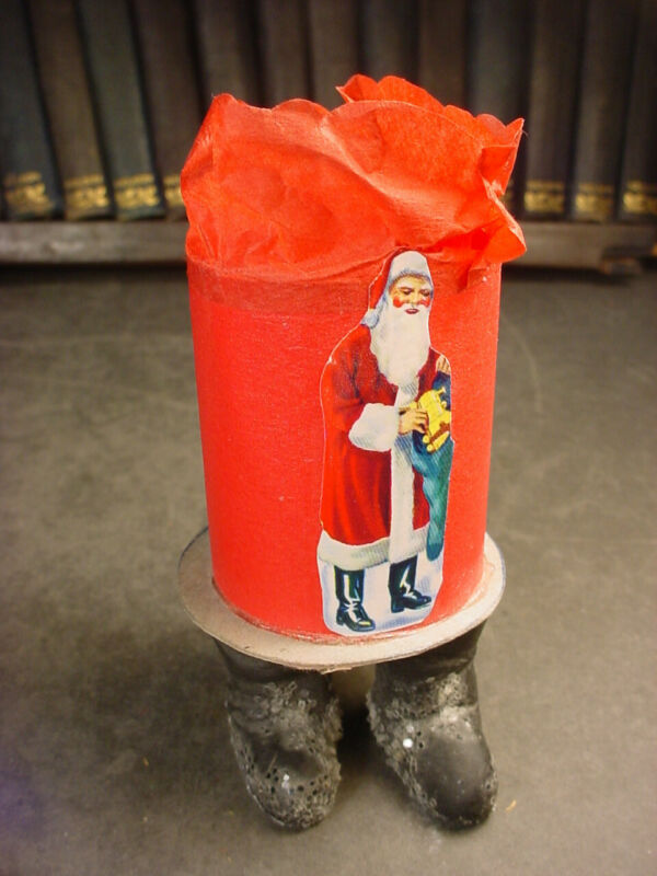 Title (ebay affiliate link): Paper Mache Santa Boots Candy Container, vintage