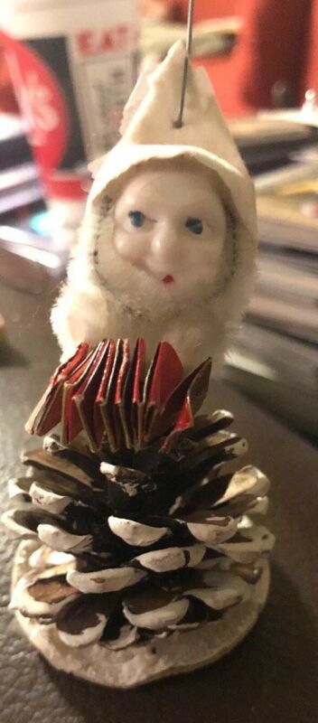 Title (ebay affiliate link): VINTAGE PINE CONE ELF PLASTIC FACE GNOME CHRISTMAS ORNAMENT PINECONE