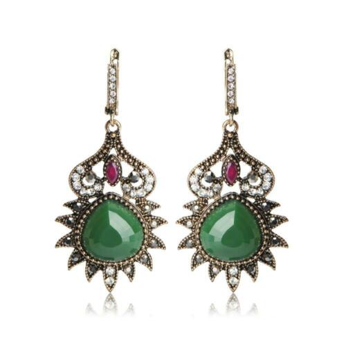 Vintage Antique Gold Filled Green Resin Crystal Sun Drop Earrings For Women Gift