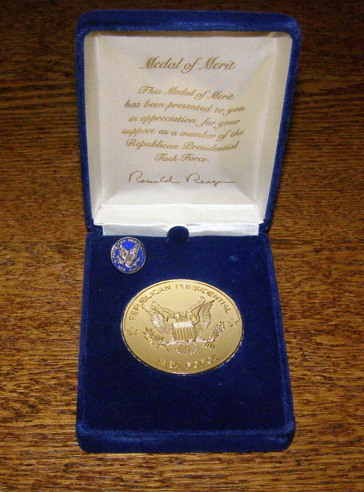 Title (ebay affiliate link): Ronald Reagan Medal of Merit and Pin in Case, Republican Presidential Task Force