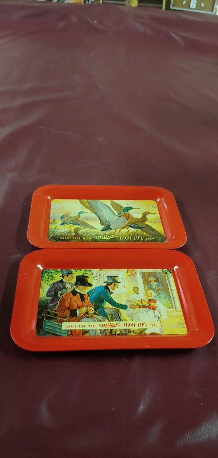 Set 2 Vintage 1950s Ducks Miller High Life Beer Tin Litho Advertising Tip Tray