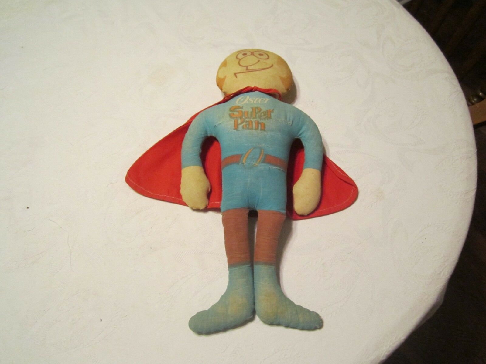 Title (ebay affiliate link): VTG OSTER SUPER PAN SUPERHERO 18" FIGURE CLOTH DOLL PREMIUM ADVERTISING