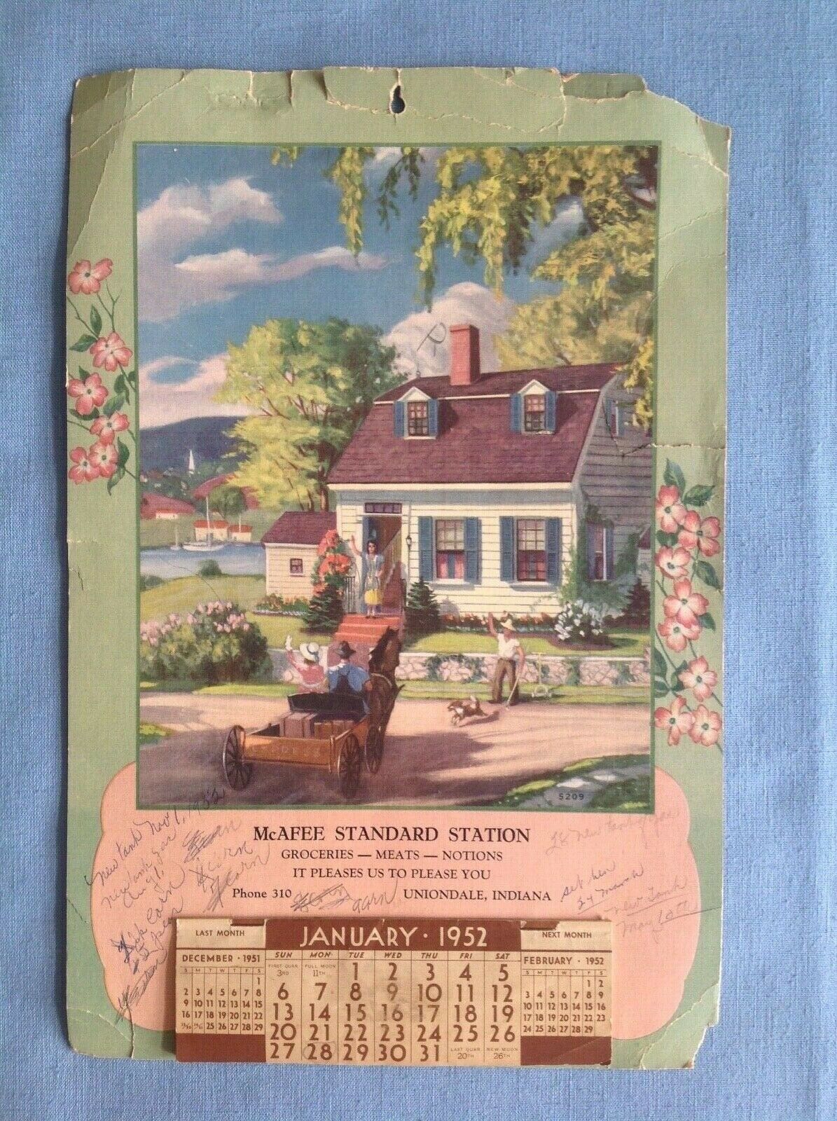 Vintage 1952 Standard Station Tear Off Calendar-Uniondale IN-Pretty Picture