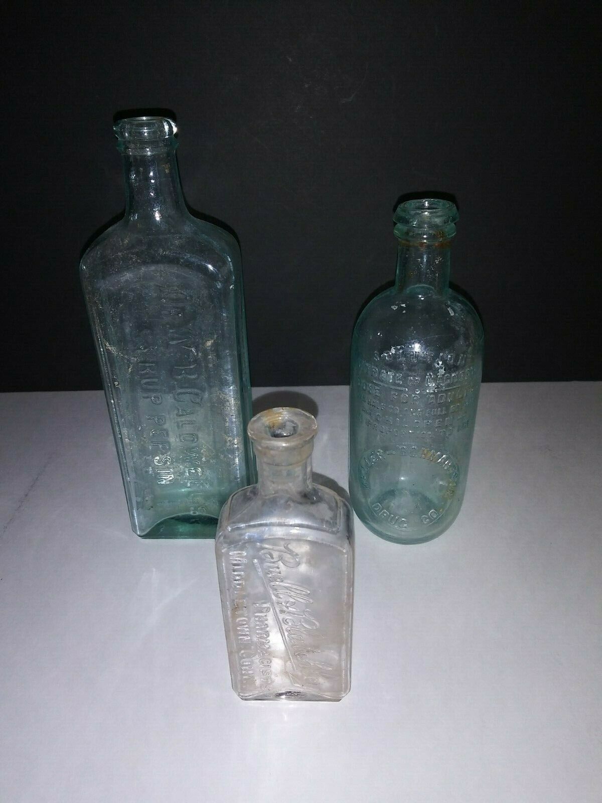 Title (ebay affiliate link): 3 VINTAGE PHARMACY MEDICINE APOTHECARY GREEN EMBOSSED BOTTLES MIDDLETOWN, CONN.