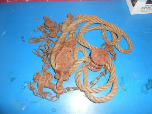VINTAGE HAY PULLEY CHAIN ROPE PULLEYS MAN CAVE BLOCK AND TACK