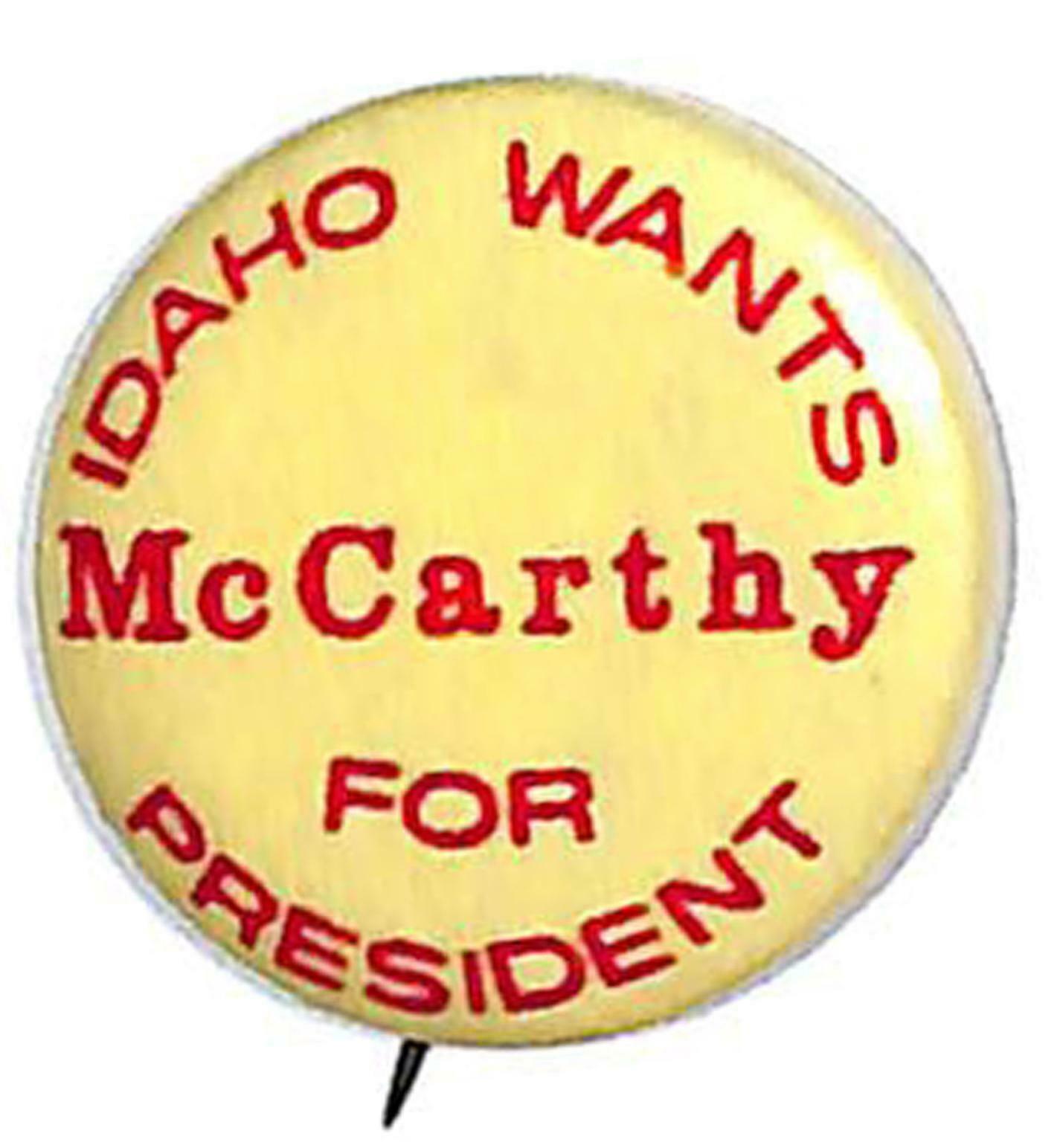 Unusual 7/8" celluloid "Idaho Wants (Eugene) McCarthy for President button