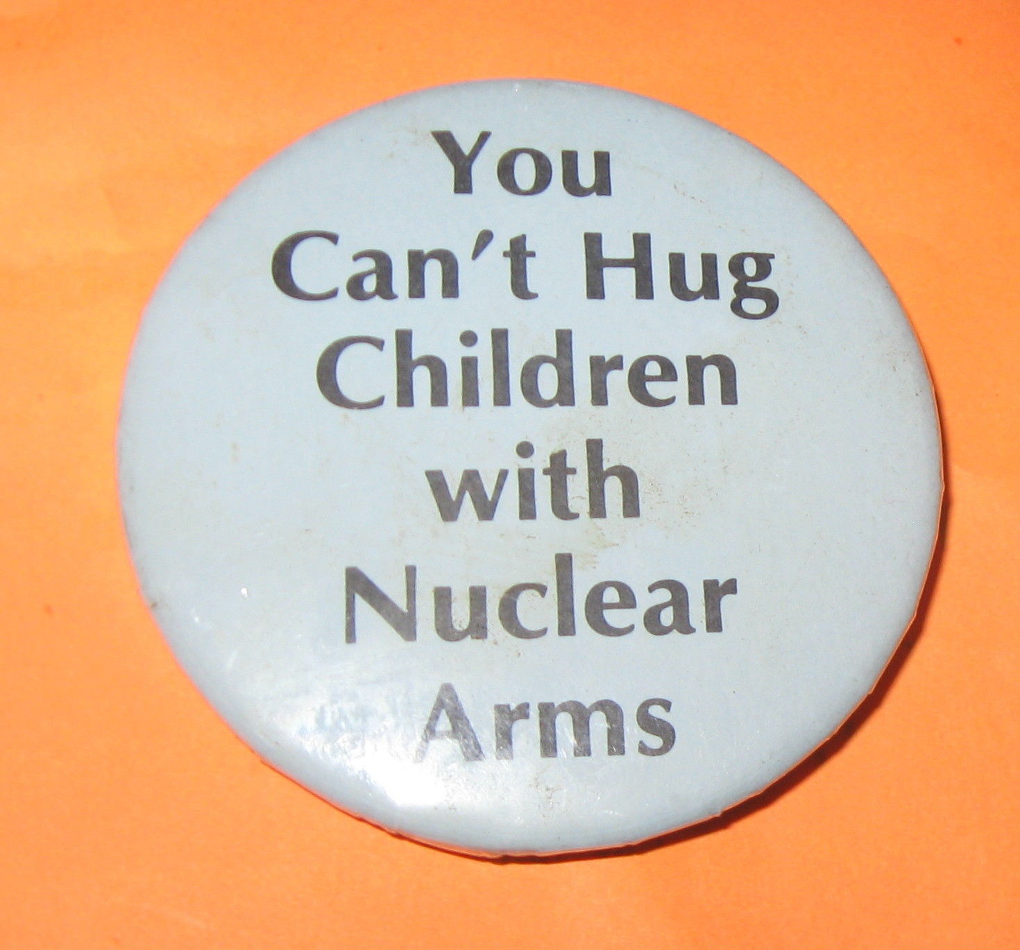 Title (ebay affiliate link): ANTI NUKE, PROTEST, Button,"Cain''t Hug Children With Nuclear Arms" ORIGINAL