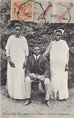 PORTUGAL ANGOLA 1910 postcard BENGUELLA 3 JOVENS BURGUEZES st. to FRANCE