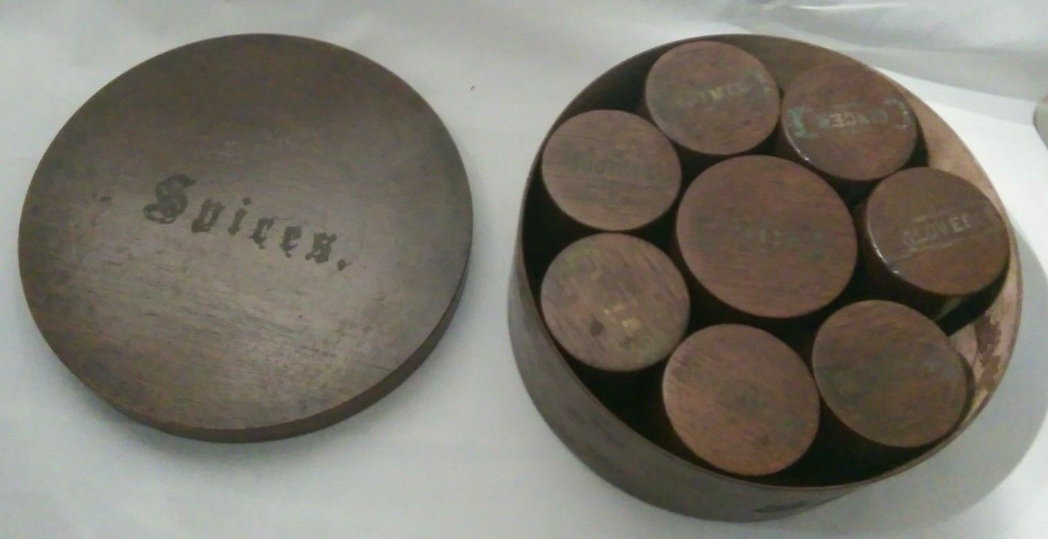 Title (ebay affiliate link): Antique Round Wooden Spice box with 8 boxes inside Nov. 17, 1866