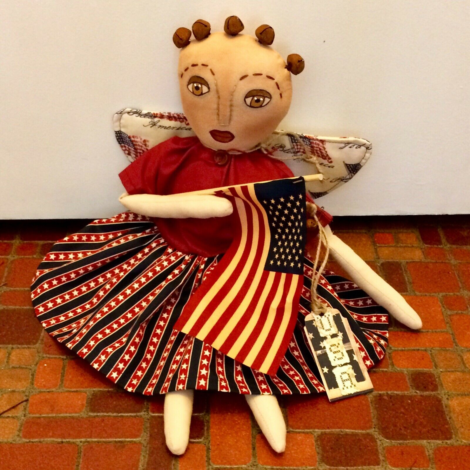 Title (ebay affiliate link): Primitive Patriotic Lady Liberty Doll Folk Art Americana Hand Over Heart Angel
