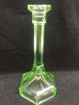 Title (ebay affiliate link): Depression Green glass Fairy lamp candle holder candlestick art stick clear TALL