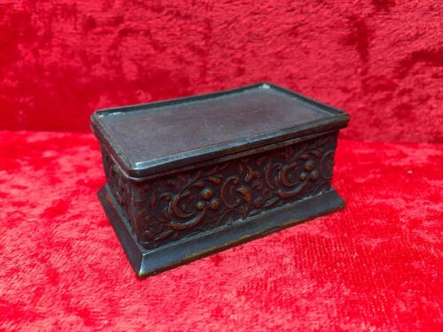 ANTIQUE BRASS RELIEF DESIGN STAMP BOX REMOVABLE INSIDE LOOK!