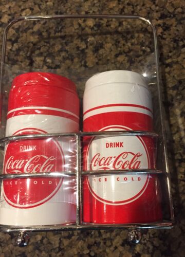NEW Vintage look COKE COCA COLA salt and pepper shakers & caddy Red White