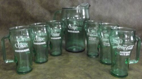 Title (ebay affiliate link): RARE VINTAGE WHATABURGER Green Coca-Cola COWBOY Pitcher Glasses PROMO-Mc Donalds