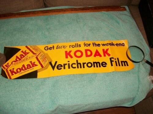 Title (ebay affiliate link): Vintage 27" X 7" Kodak Verichrome Film Store Display Sign Get 2 Rolls For Weeken
