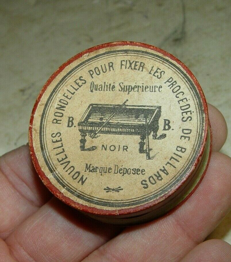 Antique Victorian Advertising French Billards Pool Table Round Cardboard Box #11