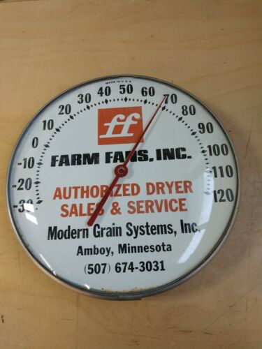Vintage Advertising Farm Fans Inc. Modern Grain Systems Amboy, MN Thermometer