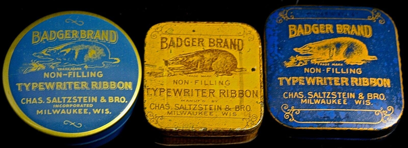 3 RARE BADGER TYPEWRITER RIBBON TINS-- 3 Rare Tins!! ALL PRICES REDUCED