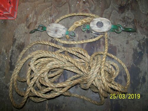 Title (ebay affiliate link): Vintage Barn Wood Block & Tackle Double Pulley W/Rope