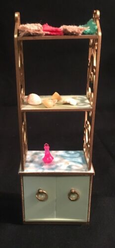 Vintage Ideal Petite Princess Bathroom Dollhouse Furniture Blue Towel Shelf