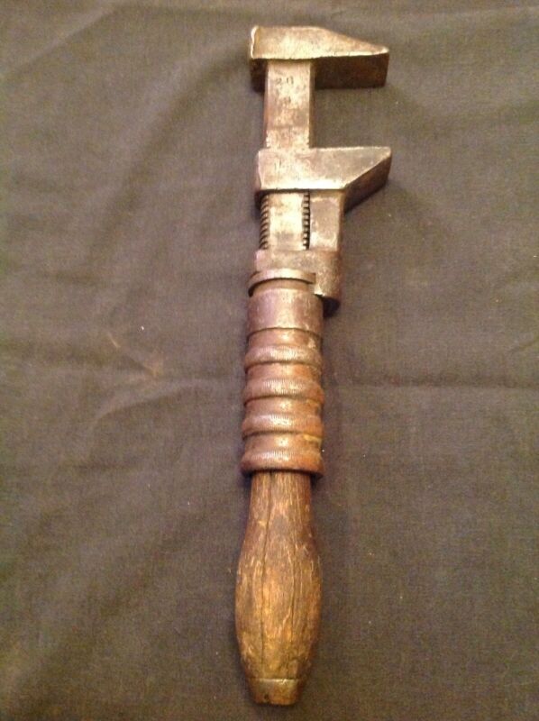 Title (ebay affiliate link): Antique Pipe Wrench with Wood Handle Springfield Mass.