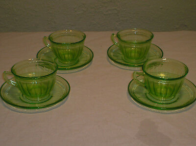 FEDERAL COLONIAL FLUTED ROPE GREEN 8 PIECE CUP AN SAUCERS MARK F WITHIN A SHIELD