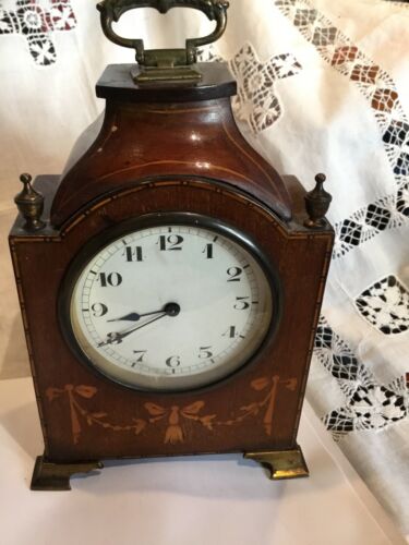 Antique Edwardian Mahogany Inlaid Mantle Clock