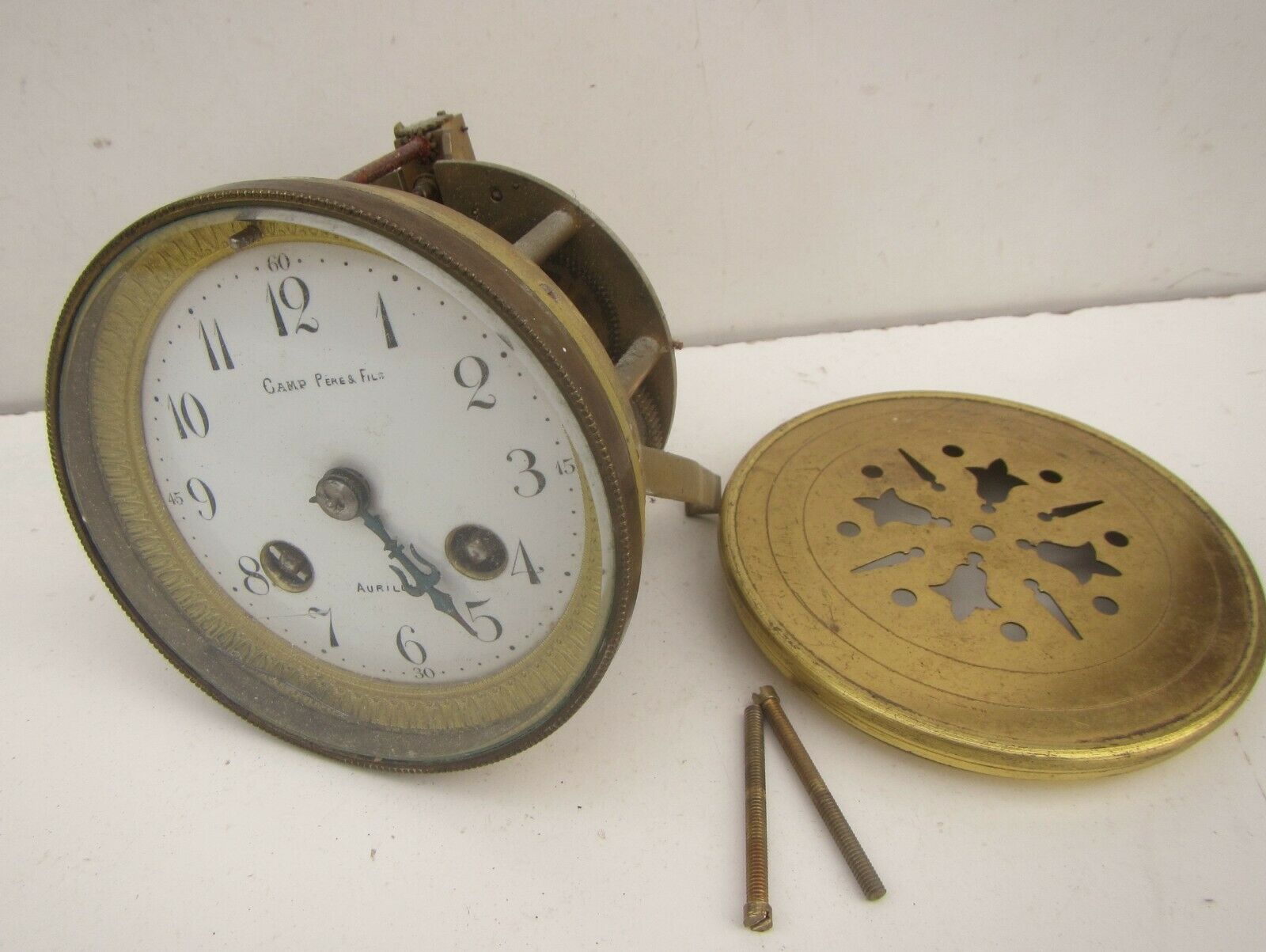 Old ''Camp Pere & Fils, Aurilla'' Brass Mantel Clock Movement