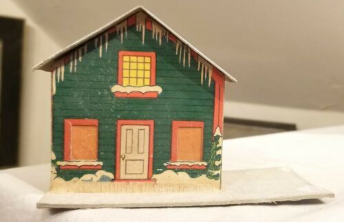 Title (ebay affiliate link): Green Clapboard Cardboard House, Icicles on Roof. USA. 1930s. Putz House