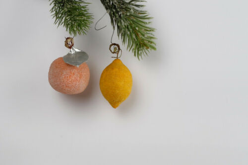 Title (ebay affiliate link): 2 x Vintage Spun Cotton Christmas Ornaments,tangerine,lemon.