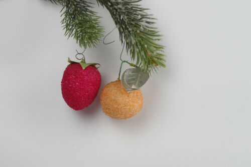 Title (ebay affiliate link): 2 x Vintage Spun Cotton Christmas Ornaments,tangerine,strawberry
