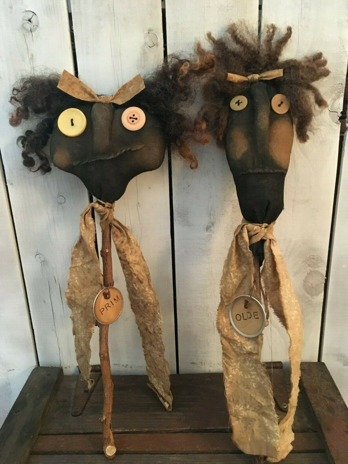 Title (ebay affiliate link): Primitive Doll Black Doll Folk Art Doll Pokes Crocks Jars Wool Hair Olde Label