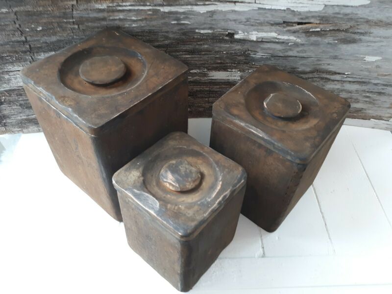Title (ebay affiliate link): Old early Primitive antique farm SET of 3 WOOD BOXES with lids kitchen