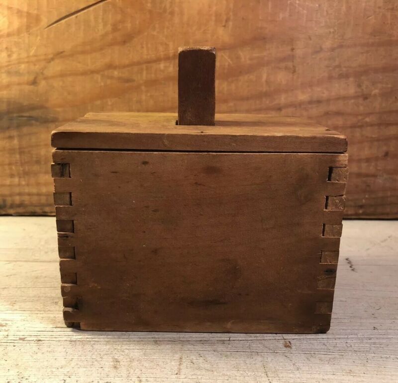 Title (ebay affiliate link): PRIMITIVE ANTIQUE DOVETAILED WOODEN BUTTER MOLD
