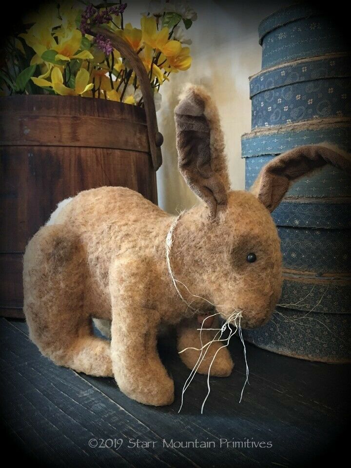 Title (ebay affiliate link): Primitive Folk Art Farmhouse Spring Prairie Bunny Rabbit Crouching Hare