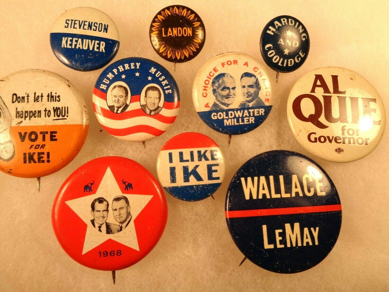 Title (ebay affiliate link): Vtg Political Campaign Pin Buttons~IKE~LANDON~HARDING~HUMPHREY~NIXON~WALLACE~etc