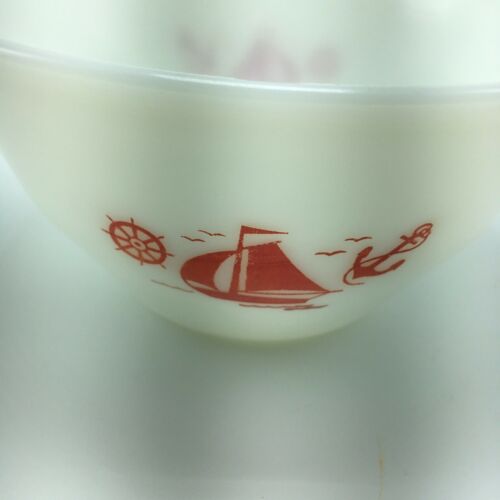 Vtg Mckee Red Sail Boat Mixing Bowl Nautical Milk Glass Anchor Steering Wheel