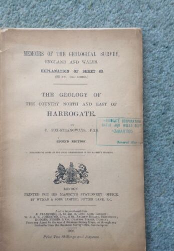 Title (ebay affiliate link): Geology of Harrogate, Geological Survey Memoir Yorkshire Spa, Springs, Map