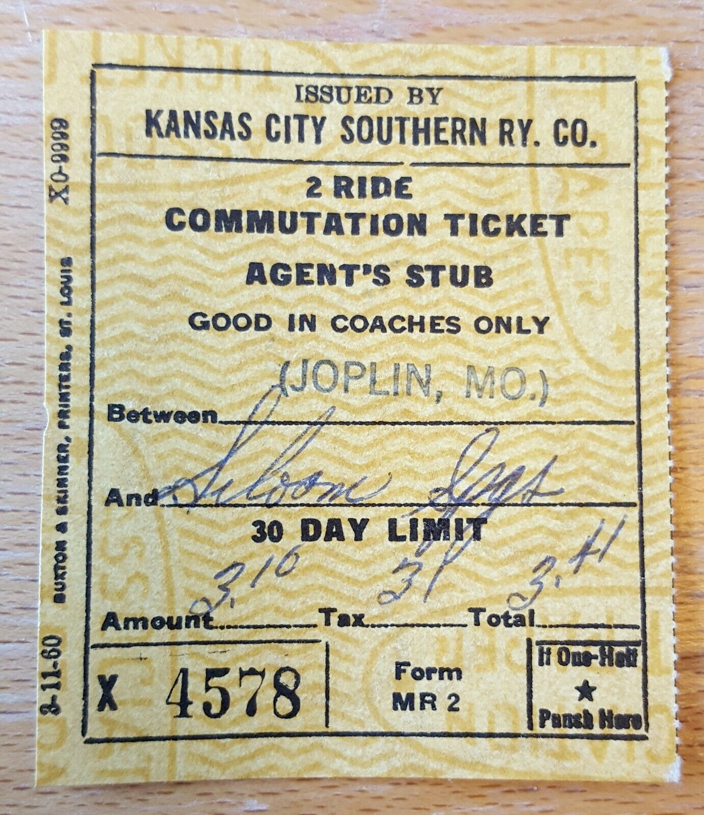 Title (ebay affiliate link): 1962 Kansas City Southern Railway Company, Joplin MO., Vintage Ticket