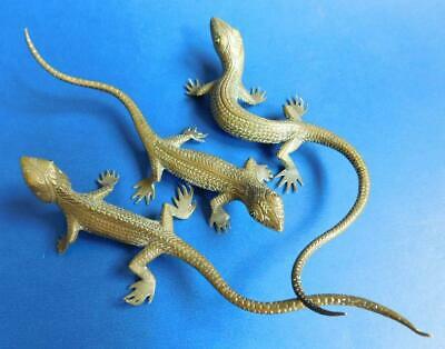 3 Antique Brass Lizards Skinks & Dragon Glass bead eyes