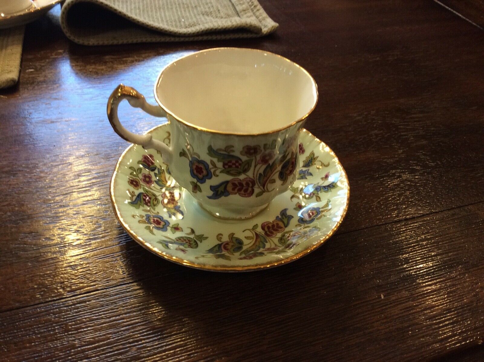 Vtg PARAGON TEA CUP AND SAUCER ANTIQUE SERIES LT. GREEN WITH FLORAL CENTER