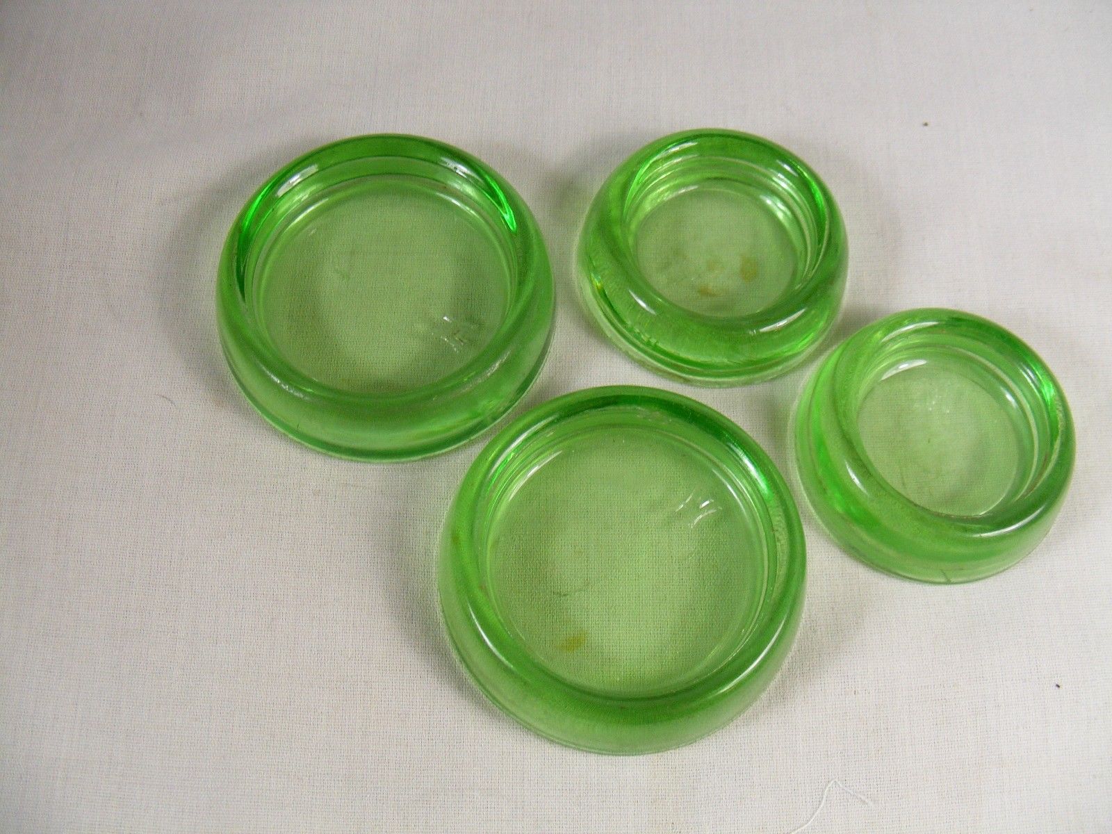 Title (ebay affiliate link): Vintage Set of 4 Green Depression Anchor Hocking Furniture Casters