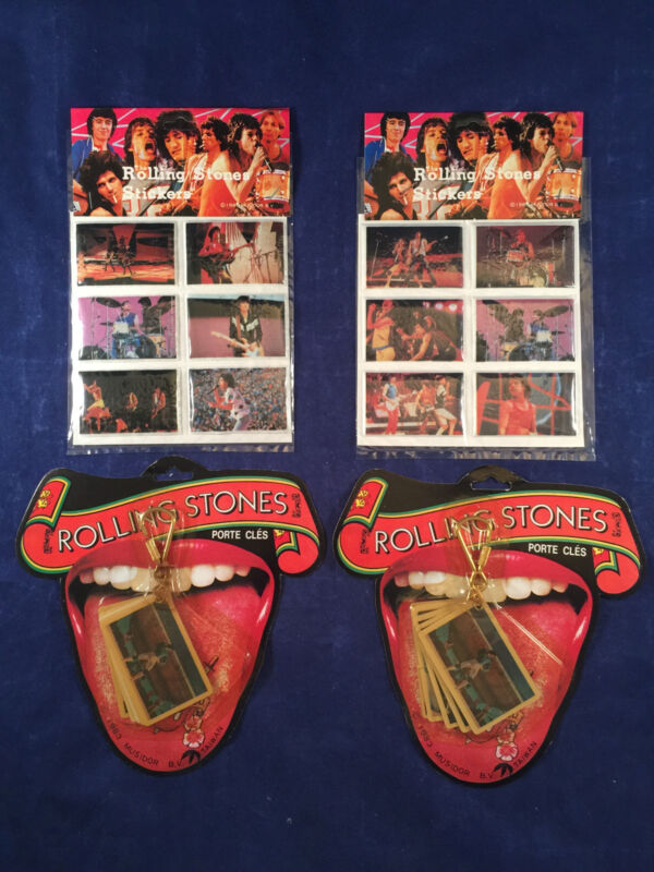 Title (ebay affiliate link): Vintage Rolling Stones Puffy Stickers & Key Chains Lot of all 4 Pieces Shown