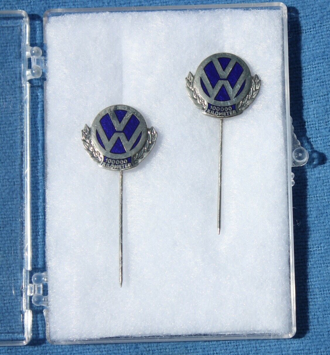 Title (ebay affiliate link): Lot of 2 Vintage VOLKSWAGEN 100,000 Kilometer Enameled Silver Stick Pins